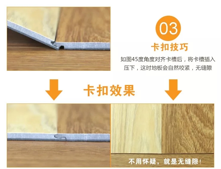 鎖扣地板由于鎖力的作用,即使免膠鋪裝,接縫也很緊密,避免地板受熱干燥而抽縫,不含甲醛,真正做到了對(duì)消費(fèi)者的健康環(huán)保負(fù)責(zé)。