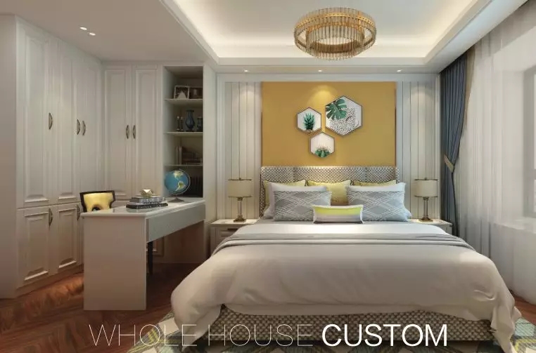 次臥空間可以作為小書房,也可以作為客房。在房間里打造一個(gè)多功能柜,可以滿足小戶型的收納。
