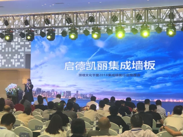 啟德凱麗副總經(jīng)理來曉華女士上臺闡述品牌綜合實力與生產(chǎn)情況,其主要生產(chǎn)研發(fā)竹木纖維集成墻面,以環(huán)保和品質(zhì)為發(fā)展重心,打造匠心獨運的品牌。