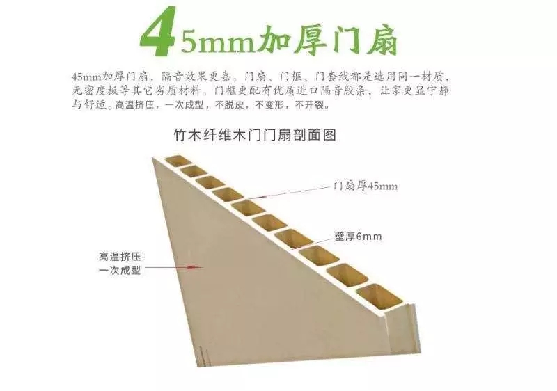 竹木纖維木塑門——是采用木材超細(xì)粉粒與高分子樹脂混合,通過模塑化工藝制造而成,兼有木材和塑料的優(yōu)良特性,生產(chǎn)的制品達(dá)到了真正仿木的效果。