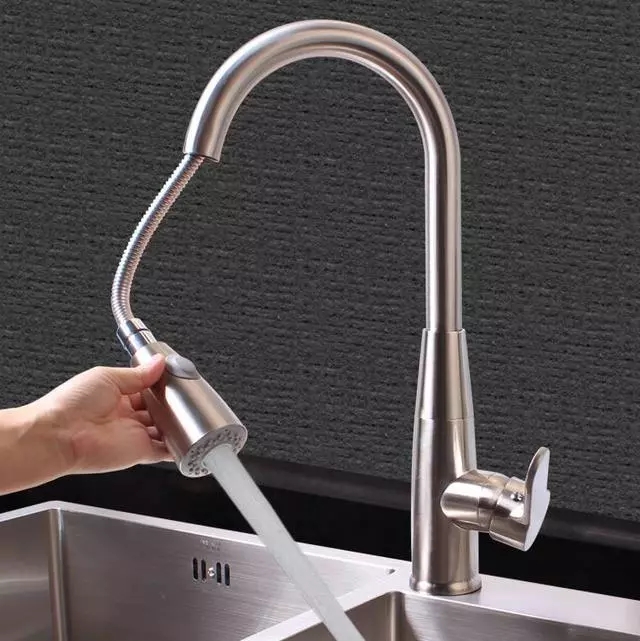 現(xiàn)在大多廚房的水龍頭都更新成抽拉式的,可以全方位清洗水槽里的鍋碗瓢盆,而且濺出的水漬也變少了。