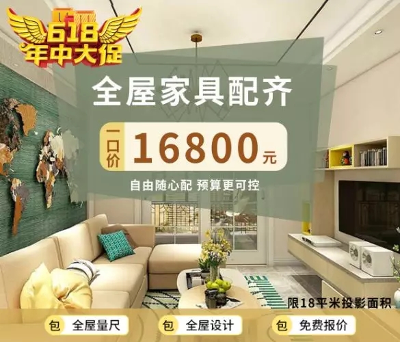 啟德6.18年中大促精彩來襲,18平米全屋定制套餐16800元。