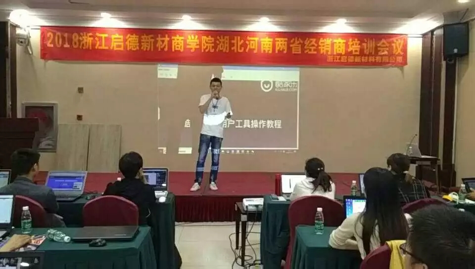 ▲會(huì)議上,浙江啟德新材有限公司董事長(zhǎng)洪德園先生首先致辭歡迎各位經(jīng)銷(xiāo)商來(lái)到美麗的武漢,與啟德共商發(fā)展大計(jì)。他主要強(qiáng)調(diào)啟德非常重視與經(jīng)銷(xiāo)商之間的合作共贏,希望借此會(huì)議為雙方搭建更好的溝通平臺(tái),為了讓各位經(jīng)銷(xiāo)商提供系統(tǒng)化、專(zhuān)業(yè)化的培訓(xùn)服務(wù)。共同實(shí)現(xiàn)跨越式的發(fā)展。