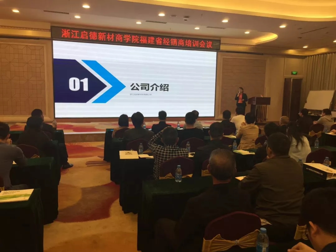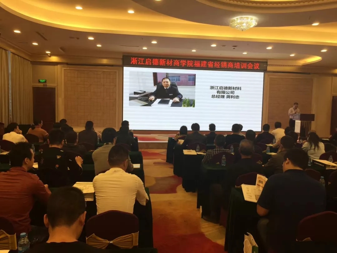 會(huì)上,浙江啟德新材料有限公司總經(jīng)理龔利忠先生首先致辭歡迎各位經(jīng)銷商來(lái)到美麗的福建——泉州,與啟德共商發(fā)展大計(jì)。他主要強(qiáng)調(diào)啟德非常重視與經(jīng)銷商之間的合作共贏,希望借此會(huì)議為雙方搭建更好的溝通平臺(tái),為了給各位經(jīng)銷商提供系統(tǒng)化、專業(yè)化的培訓(xùn)服務(wù)。共同實(shí)現(xiàn)跨越式的發(fā)展。