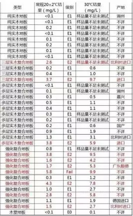 從上表可以看出,實木地板和多層復合實木地板的最高環(huán)保等級為E1級,強化復合地板E2級居多,值得注意的是在30度測試的數(shù)值大大高于20度左右的,也就是說,到了30度才是甲醛揮發(fā)的活躍期,這時候,很多地板都嚴重超標。身處南方和需要用地暖的朋友更要注意了!