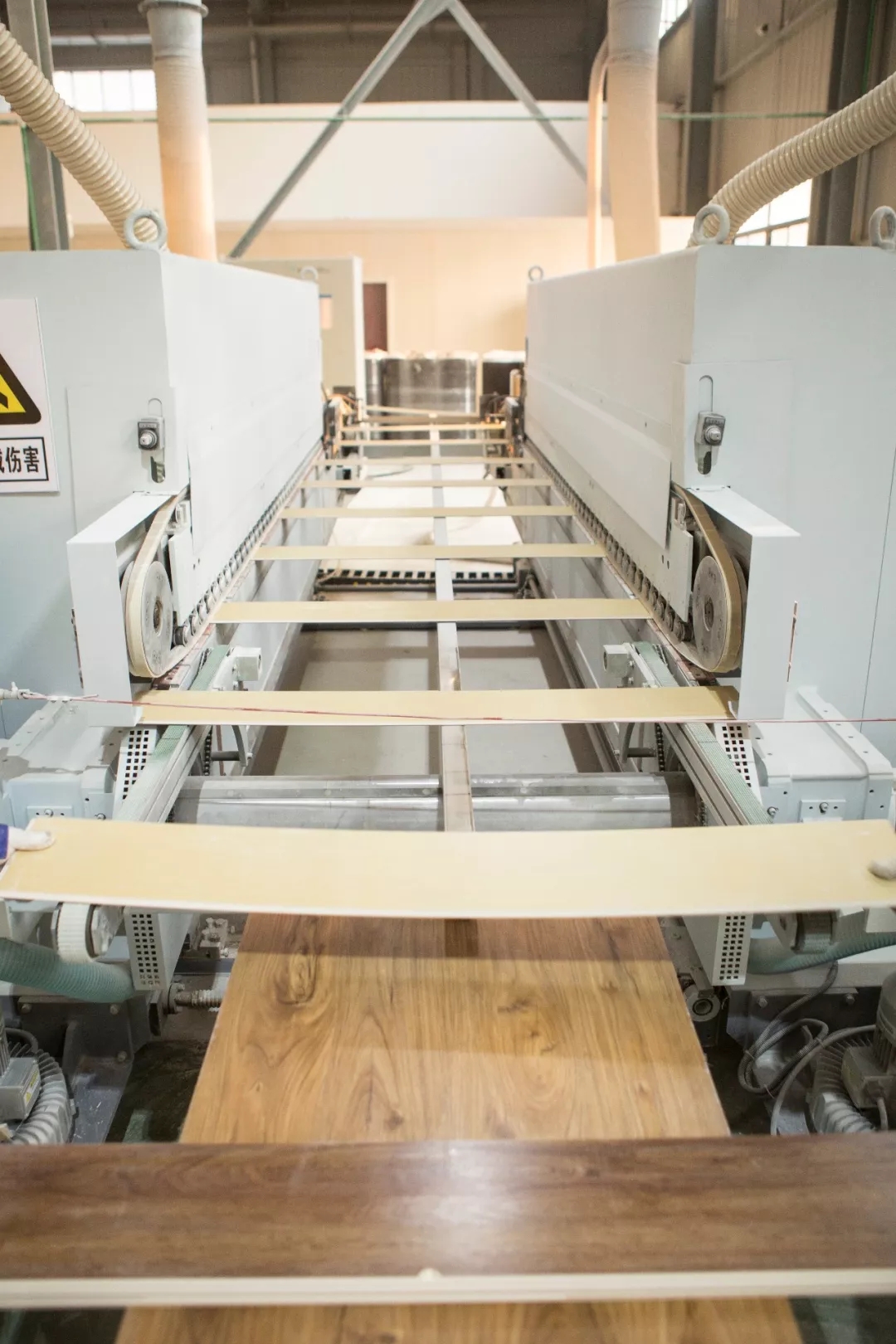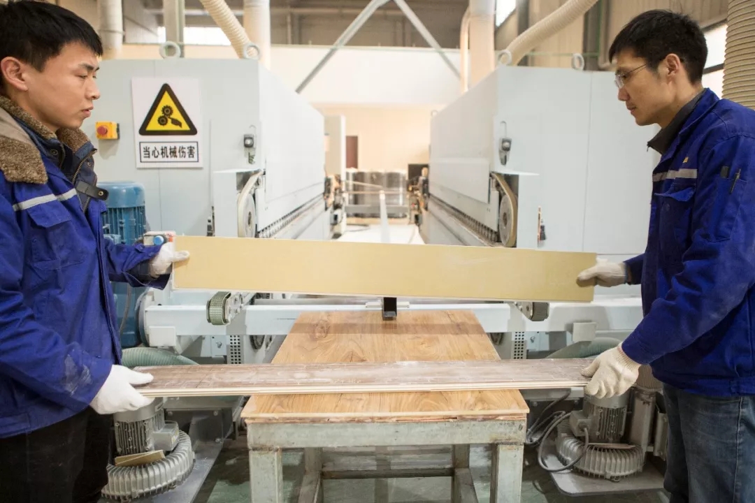 以一層或多層專用紙浸熱固性氨基樹脂,鋪裝在刨花板、高密度纖維板等人造板基材表面,背面加平衡層,正面加耐磨層,經(jīng)熱壓成型的地板,商品名稱為強化木地板。