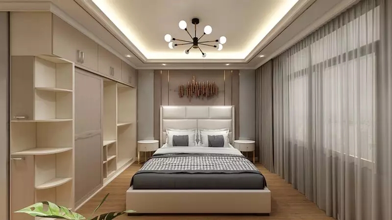到頂衣柜在清潔衛(wèi)生上也省事不少,而且不到頂?shù)囊鹿耥敳亢苋菀追e塵,需要定期擦拭,擦干凈之后還要挪梯子之類的,甚是麻煩,不如直接設(shè)計(jì)成雙開門帶頂?shù)模?