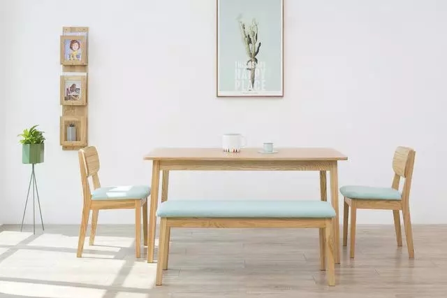 極簡(jiǎn)的日式風(fēng)格,用天然的水曲柳表現(xiàn)出家的溫馨和舒適自然的浪漫氣息。一桌兩椅的設(shè)計(jì),既能夠滿足兩人食的幸福需要,桌腳和小巧的造型又極大節(jié)省了空間,讓整個(gè)居室更為精簡(jiǎn)和通透。