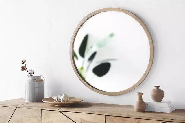 順暢的曲線弧度能給人帶來(lái)柔和的心理暗示,再加上實(shí)木圓框和銀白鏡面的相互搭配,這款圓鏡安置在客廳、房間甚至玄關(guān)都很適宜,反射采光和提升空間亮度的同時(shí),還擁有極強(qiáng)的裝飾性和功能性。