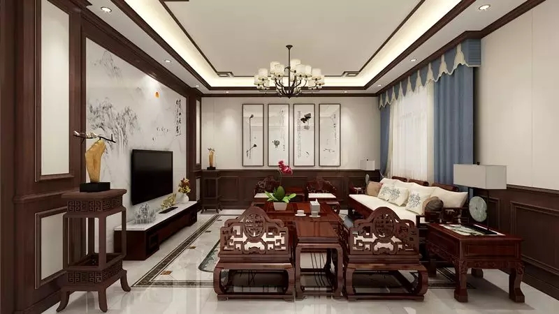 中國傳統(tǒng)觀念講究平和中正,這在建筑和家居上的體現(xiàn)就是四平八穩(wěn)、兩兩對稱。從材質(zhì)上來說,中式裝修以木為主,體現(xiàn)出厚實沉穩(wěn)的精神氣質(zhì),主次分明、追求對稱、講究中正的空間布局和家具擺放,各體現(xiàn)出了這種經(jīng)過歷史沉淀的莊重和優(yōu)雅。如下中式裝修效果圖,觸目皆是正方形,透著濃濃的中式氣質(zhì)。