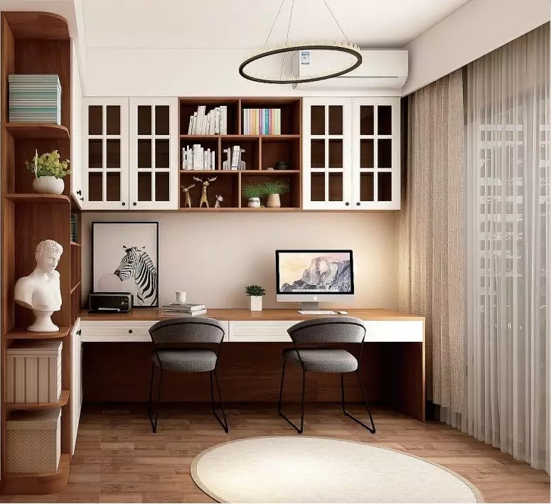 如果,恰巧,你們二位都是讀書愛好分子;或者,也許,你是一個需要經(jīng)常在家辦公soho的有為青年,那么,用長桌或定制一個雙人位的書房,將工作與生活結(jié)合得讓人舒服又不厭煩,可謂相得益彰。
