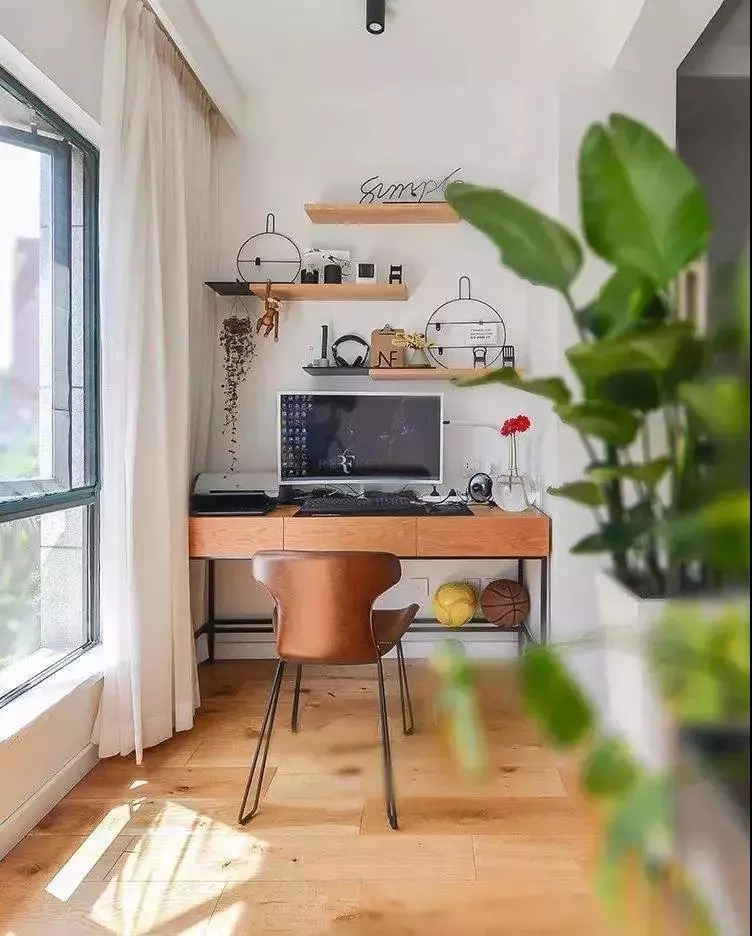 在陽臺改裝書房需要注意的地方有兩個。一是要選好四周的窗簾跟窗紗,避免炎炎夏日的陽光刺傷眼睛;二是考慮好保暖密封問題,不然冬天在這里看書的你,堪稱智慧凍人。