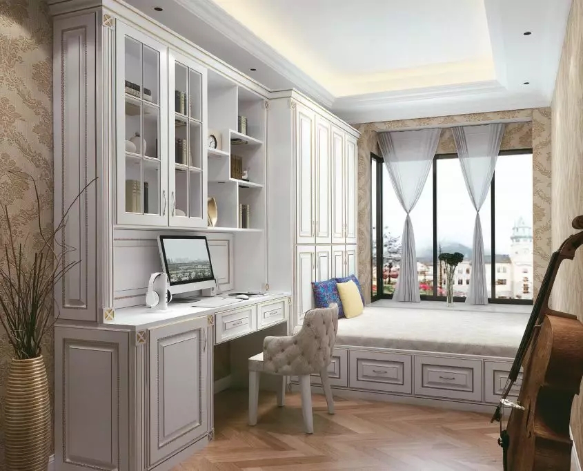近些年流行的榻榻米,可謂是把空間利用到極致的典型。實在沒有富??臻g用作書房,那就結(jié)合榻榻米來打造一個集臥室、儲物、收納、書房于一身的多功能空間吧。
