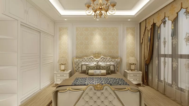 窗簾顏色的選擇,在與房間整體格調(diào)協(xié)調(diào)的同時,可以選擇暖色調(diào)以呼應(yīng)新年的到來。相較于床具的繁復(fù)華麗,窗簾并不需要過多的渲染。沒有圖案的純色窗簾,就可以輕而易舉地烘托出浪漫的氣氛。