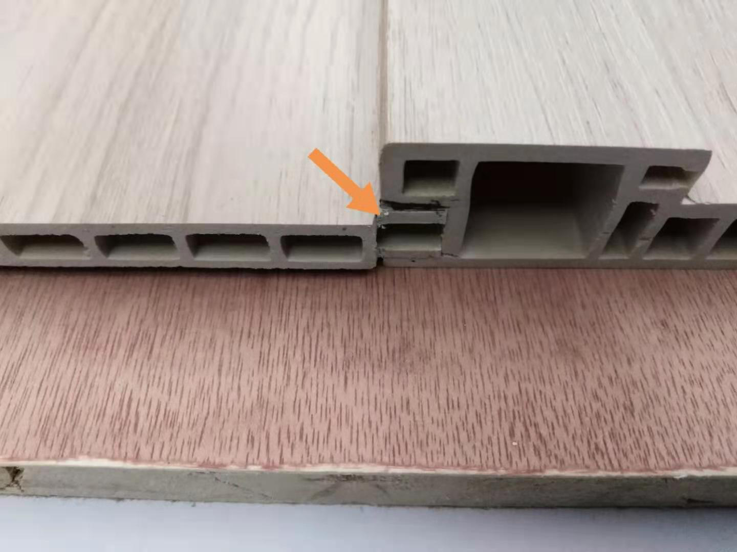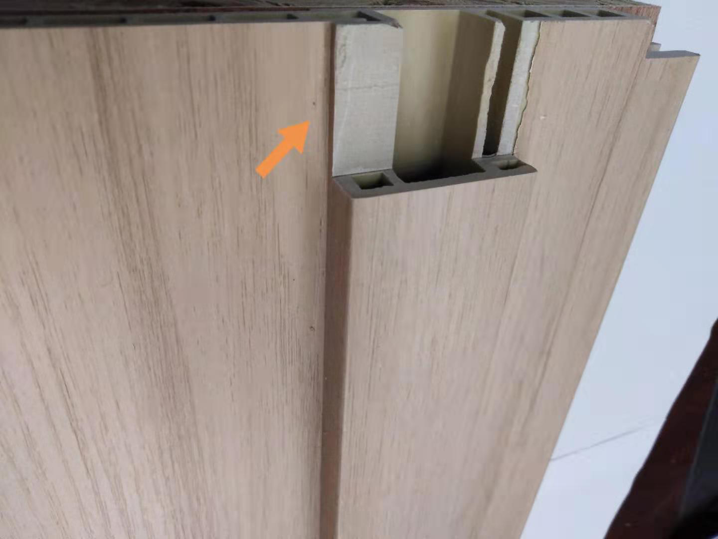 3、安裝門邊線時要在門套槽中加入適量的白膠。