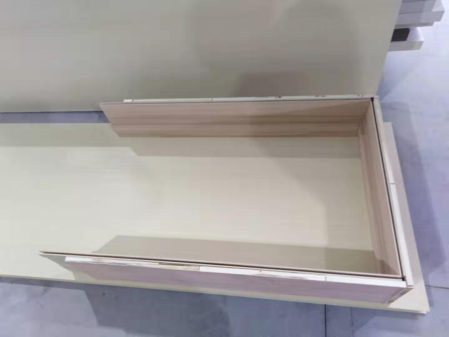 2、取出兩長一短主、副套,臺鋸上按照尺寸裁切,首先將副套寬度按墻寬減去79mm切好,接著準備連接組合套前各項工作。