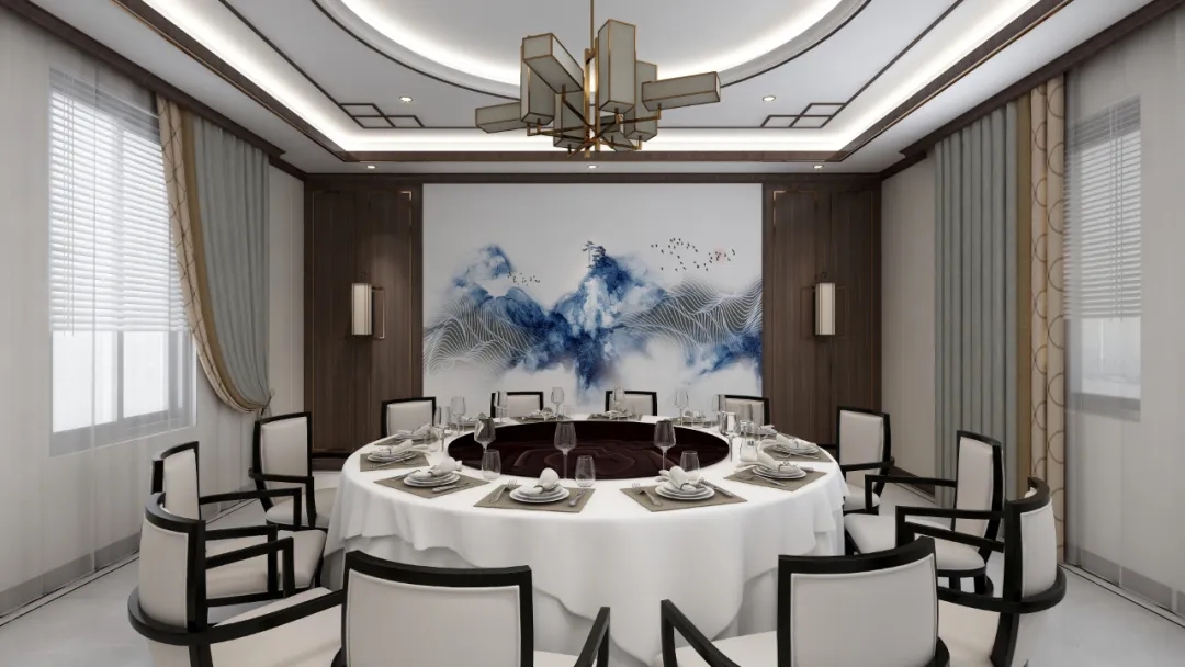 餐廳中的背景墻與客廳中的藍(lán)色山水背景墻相呼應(yīng),在整個餐廳里獨樹一幟,顯得清新雅致。在這樣的環(huán)境下,媽媽做好一頓豐富的大餐,回家吃飯簡直是享受哦~