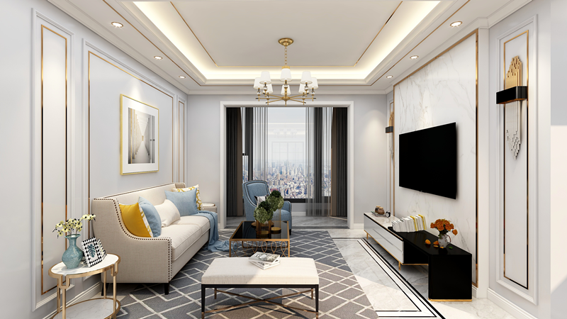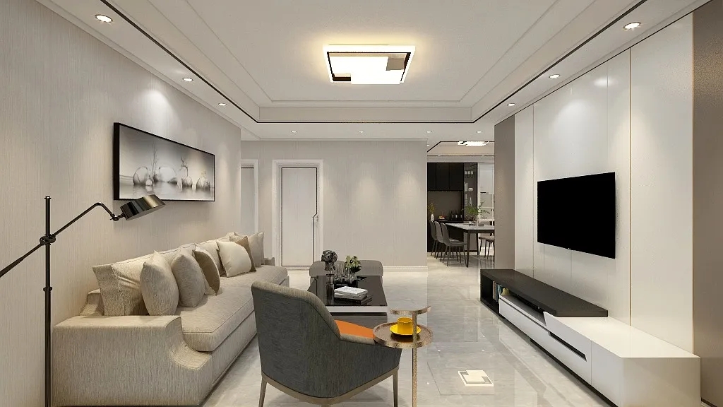 客廳以米白色系為基調(diào),簡約線條感的木飾面配以款式大方的家具,詮釋出簡潔、沉穩(wěn)之感。