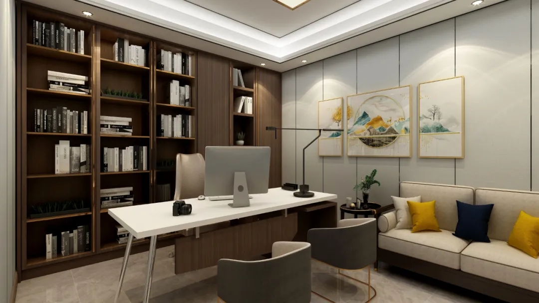 書房還是以新中式為主基調(diào),沒有明亮的色彩羈絆,素凈優(yōu)雅,使空間營造出素雅恬靜的視覺感受。在這里,你可以獨享時光,更可以與父母進(jìn)行更多的溝通~