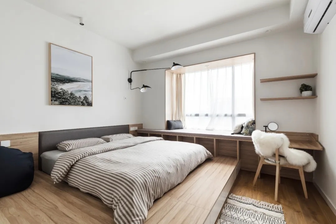 ▲飄窗上加一層抽屜,加高了飄窗后,還能把飄窗設計成梳妝臺或者書桌,讓小臥室也更加實用情趣。
