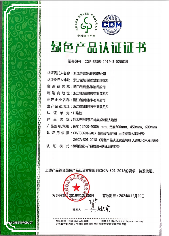一直在在“裝修環(huán)?!鳖I域遙遙領先,經(jīng)過多重符合國際、國家標準的嚴格審核,啟德新材正式通過了綠色產(chǎn)品認證證書。