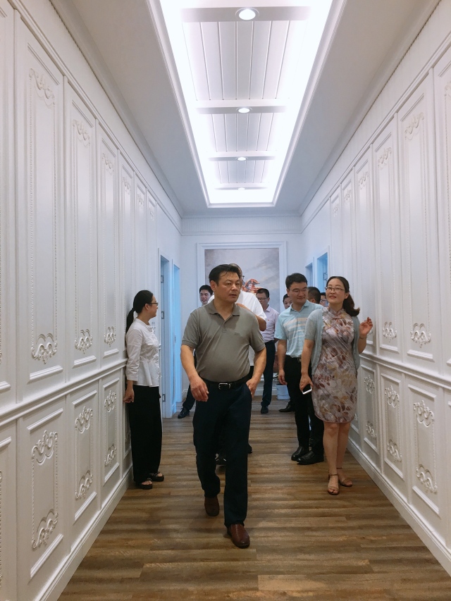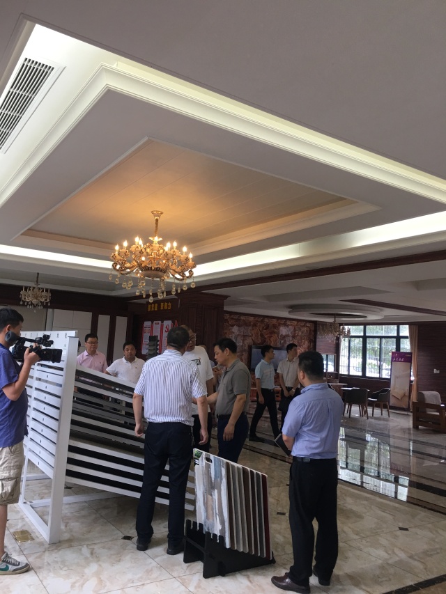 視察中,趙書記、陳縣長一行人認(rèn)真聽取了公司領(lǐng)導(dǎo)對目前公司發(fā)展以及二期工程建設(shè)情況的匯報,對我公司取得的成績給予充分的肯定。領(lǐng)導(dǎo)們在總經(jīng)理的引領(lǐng)下參觀了展示廳,多種風(fēng)格的展示廳吸引了在場領(lǐng)導(dǎo)的目光,當(dāng)聽到總經(jīng)理介紹說富麗堂皇的辦公區(qū)都是由啟德自己生產(chǎn)的材料裝修的,而且裝修時間快速,風(fēng)格類型多樣,領(lǐng)導(dǎo)們紛紛表示贊賞,鼓勵啟德創(chuàng)新更多的裝修飾材。
